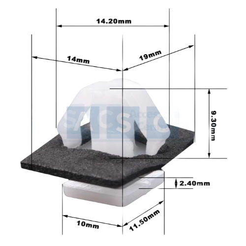 Panel Clip Hyundai Top Sq=10x12mm Bottom Sq=14×19.3mm Clip W=13mm 7/35